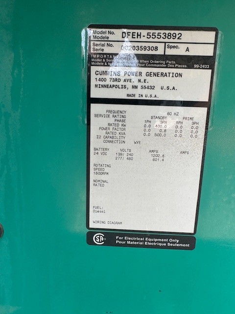 Used Cummins QSX15-G9 Generator Set